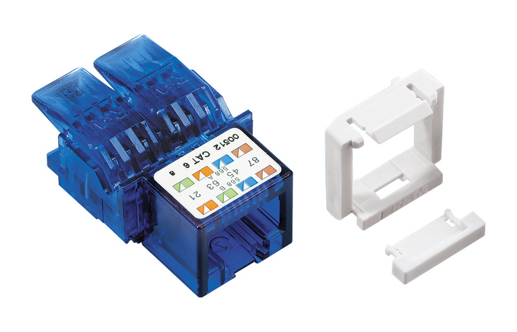 RJ45 connection module of Category 6, for the establishing of transmission channels of class E with up to 4 plugged connections, complies with Category 6 requirements of the standards ISO/IEC 11801 ed. 2.2, June 2011, EN 50173-1, May 2011 (DIN EN 50173-1) as well as TIA 568-C, de-embedded tested in acc. with IEC 60603-7-4, interoperable and backwards compatible with Cat. 5e and Cat. 5.