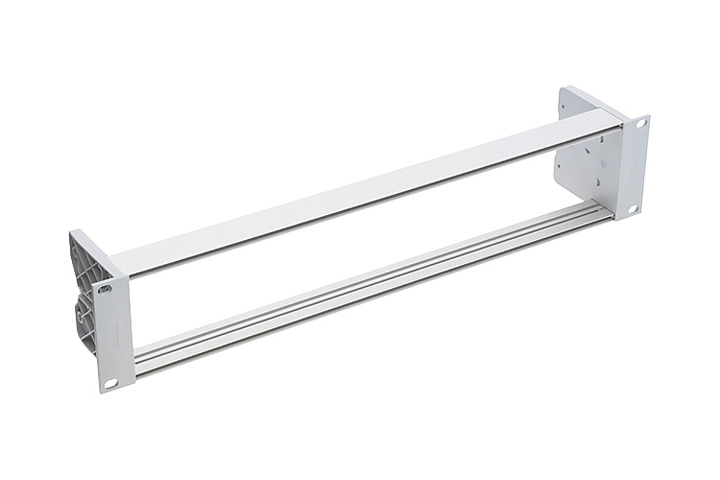 Modular patch panel accommodating up to sixteen connection module holders 2U Global/u, installation-friendly thanks to snap-and-go technique, 2U Global blind cover. Designed to accommodate the R&M security and the R&M environment system, with its 3-level protection concept: color coding, mechanical coding, locking option. Exchangeable labeling strips, fastening kit, labeling fields, tool-free locking and unlocking system. Profile aluminum, colorless chromatized; side panel plastic (PC), fiberglass-reinforced, halogen-free, color medium gray (NCS 2502-B).