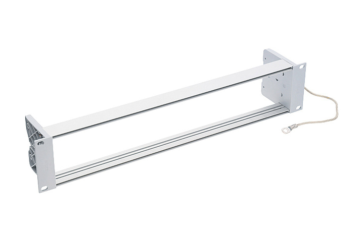 Modular patch panel accommodating up to sixteen connection module holders 2U Global/s, installation-friendly thanks to snap-and-go technique, featuring a complete grounding system and 2U Global blind cover. Designed to accommodate Designed to accommodate the R&M security and the R&M environment system, with its 3-level protection concept: color coding, mechanical coding, locking option. Exchangeable labeling strips, fastening kit, labeling fields, tool-free locking and unlocking system. Automatic ground contacting by spring contacts. Profile aluminum, colorless chromatized; side panel plastic (PC), fiberglass-reinforced, halogen-free, color medium gray (NCS 2502-B).