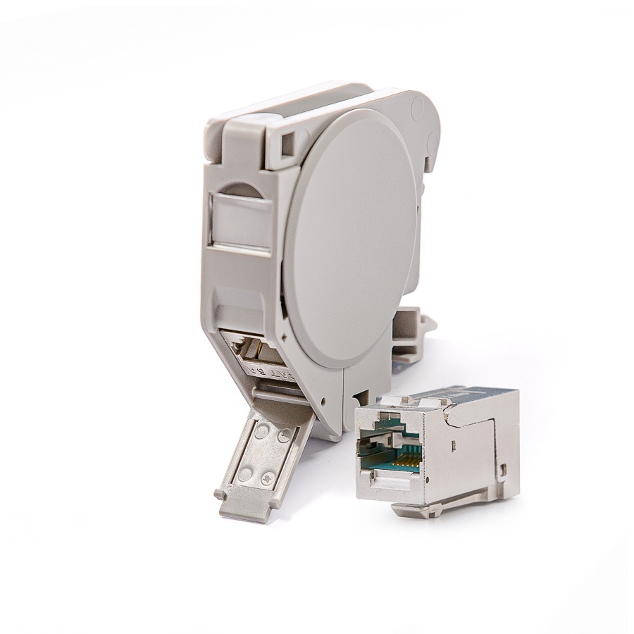 Keline, zásuvka na DIN lištu 1xRJ45 Cat.6A ISO HD STP šedá